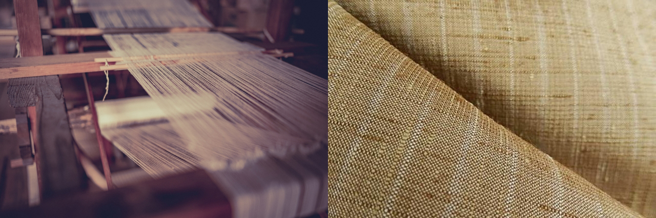 着物の生地に使用される紬は生糸に向かない節の多い繭を紡いだ生地です。